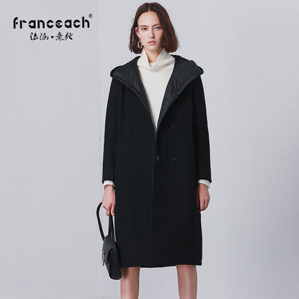 【法涵·意弛 女可两面穿连帽大衣 一面羊毛大衣+一面棉服 299元包邮平常549元】