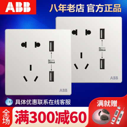 【ABB轩致 AF293 五孔带双USB 2只装 券后152元 】