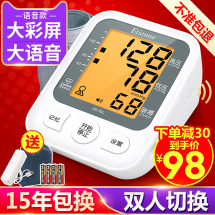 【官方旗舰店,4.9超高评分】艾蒂安全自动臂式血压,送充电宝,一键准确测量,背光高清大屏,语音播报,配置扇形臂带,双人双组记忆,心率不齐提示,送长辈的贴心好礼【赠运费险】