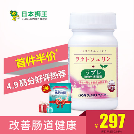 调理肠道!日本狮王 LION 乐菲灵+植物性乳酸菌 90粒,每3粒就包含180亿个植物性乳酸菌,特别添加乳铁蛋白,能调节肠道健康,改善便秘,轻盈体态,肠胃更舒适。采用特殊的涂层技术,让乳酸菌不在胃部收到分解,直达肠道。乳铁蛋白包含在牛奶和母乳中,具有抗氧化、抗癌、调节免疫系统等强大功能,每天3粒即可。 “乐菲灵”由日本狮王通过独特技术独立研发而成。因主要成分为乳铁蛋白、所以取名自乳铁蛋白英文(=lactoferrin)音译,加上独家涂层技术,保证乳铁蛋白成功送达肠道。