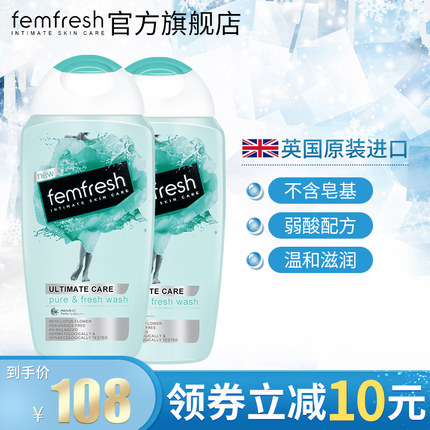 【英国 Femfresh 芳芯 女性私处护理液 250mlx2瓶 券后48元包邮(京东65元每瓶)】