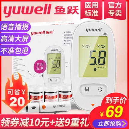 【 鱼跃 血糖测试仪 580整套 39元包邮 平常79元 】