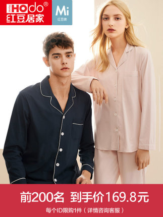 【¥149.8 纯棉长袖情侣睡衣女士套装红豆棉居家大码春秋季开衫家居服男薄款 】