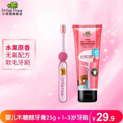 【little tree 小树苗 儿童无氟可吞咽牙膏 牙刷 19.9元包邮 】