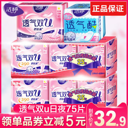 新光居家日用专营店75片只要27.9!赵丽颖倾力推荐!透气双U日用组合装,绵柔亲肤卫生巾,轻薄透气,三重持久,海量瞬吸,加长加大尾翼,防侧漏不反渗,给你清爽每一天赠运费险