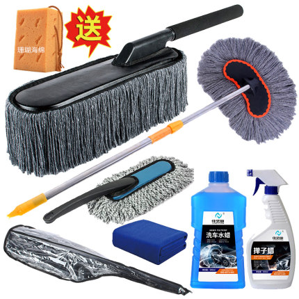 加粗手柄,结实不易生锈,弹性皮革,可拆换,加长棉线,加宽面板,带收纳袋,出厂已浸蜡,除尘上光方便,不掉毛,无碎屑,紧致柔软,不伤车漆。