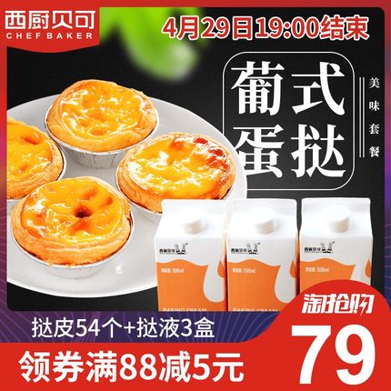 【肯德基供应商出品 西厨贝可 葡式蛋挞皮54个+蛋挞液3盒 69元包邮】