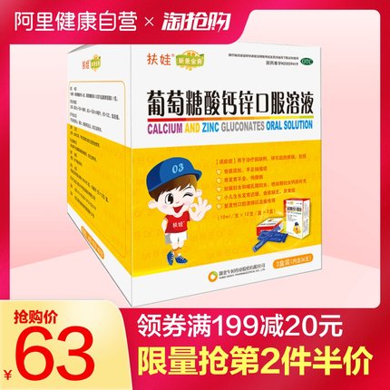 【阿里健康大药房: 扶娃 葡萄糖酸钙锌口服液( 10ml*36支)*拍2件 72支仅 84.5元】