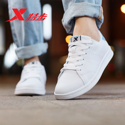 【特步官方正品】潮流小白鞋,柔软皮面,舒适贴足,防滑耐磨,休闲百搭,时尚有型,春季神器!多款多色可选!【赠运费险】