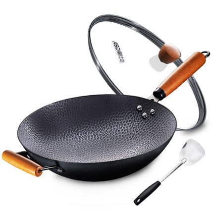 【不粘不锈,ASD爱仕达 无涂层 魔粒纹 精铸铁锅32cm 双重优惠 99元包邮 送锅铲(专柜399元)】