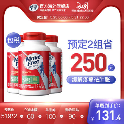 【msm配方 适合中度疼痛:美国 Move Free 120粒x3瓶 氨糖维骨力 三重优惠后409元包邮(京东约632元)】