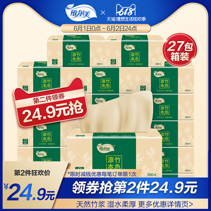 【【1包不到4毛钱!】维尔美 本色抽纸 4层27包 券后24.9元包邮】