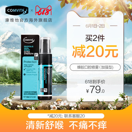 【值哭 抗溃疡、舒缓口腔不适:Comvita 康维他 蜂胶口腔护理喷剂喷雾 20ml 券后59元包邮(上次推荐价79元)】