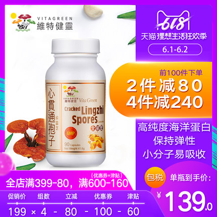 【全港灵芝15年销量第一!Vita Green维特健灵 心贯通破壁灵芝孢子粉胶囊 90粒 双重优惠后119元包邮】