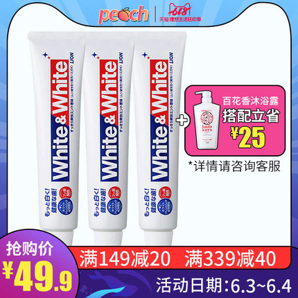 【预防蛀牙 不伤牙釉质:日本 狮王 酵素美白牙膏 150gx3支 券后39.9元包邮】
