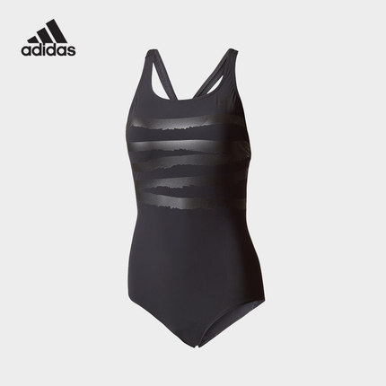 【adidas 女士 连体保守游泳衣 修身显瘦 99元包邮】