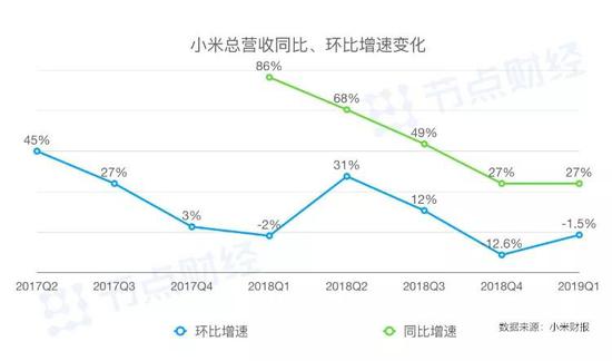 自2018年以来,小米的营收同比增速每个季度都在下滑,在2019年Q1略微反弹后,将在二季度迎接全面挑战。更有媒体以此贴出标题,给小米定义了一个“至暗时刻”。