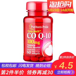【降血脂、守护心脏健康:100mgx60粒x2瓶 美国进口 普丽普莱 辅酶q10胶囊 83.5元包邮】