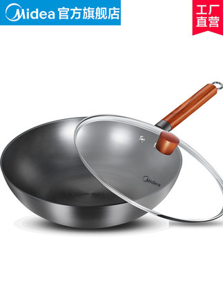 美的 无涂层 老式铁锅 32CM,美的大牌,匠造铁锅,不无涂层不生锈,透明壳锅盖,让爆炒更痛快,久用不变形,受热均匀,电磁炉燃气灶通用~美的炊具旗舰店领券拍下69元包邮