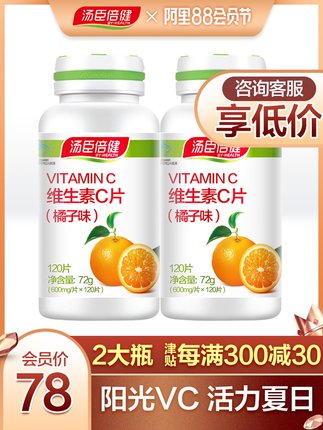 汤臣倍健众华朗臣专卖店88元,可领35元优惠券,实付53元到手,超值2瓶。阳光VC,释放你的美!汤臣倍健大品牌的维生素C,美白淡斑,酸酸甜甜好营养,有效抗氧化,增强皮肤自我修复能力