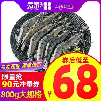 【易果生鲜 马来西亚黑虎虾800g 券后 68元包邮】