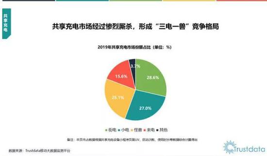 现在看来袁炳松预言成真,经历过行业洗牌之后,共享充电宝市场格局已经趋于稳定。移动互联网大数据监测平台Trustdata在7月15日发布的《2019年中国共享充电行业发展分析简报》显示,在共享充电市场份额中,街电占比28.6%,小电占比27.0%,怪兽充电占比25.1%,来电占比15.6%。