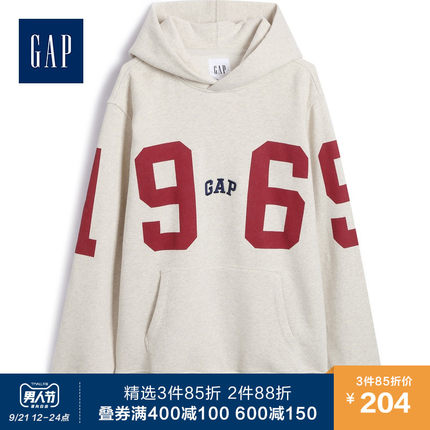 Gap官方旗舰店,19-21日 天猫男人节,¥239元 男神价,-5元优惠券,=234元 到手价,2件88折还等叠加津贴,GAP 是美国著名休闲服饰品牌,风格简约,质量靠谱。此款男士连帽卫衣,胸前撞色logo大印花,街头休闲风十足。