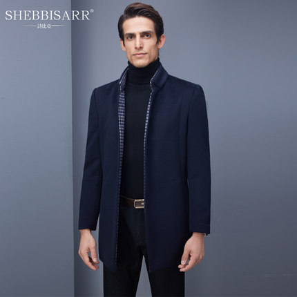 【诗比亚 男士中长款 羊毛呢子大衣 100%精纺纯羊毛 188元包邮 历史低价】