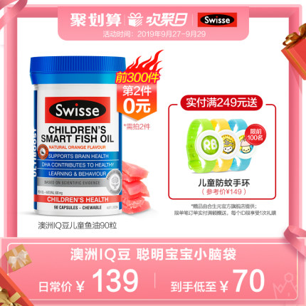 【Swisse 儿童鱼油咀嚼胶囊90粒*2瓶119元包邮包税(双重优惠,拍2件)】