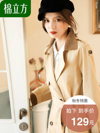 棉立方 19CF170 女士中长款风衣外套,选用棉质面料,灯芯绒翻驳领设计,收褶拼接袖口,内里为定制仙鹤里布,穿着舒适。设有腰带,三色可选,秋冬百搭单品。