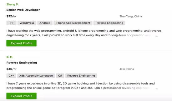 来自沈阳、吉林的工程师们,也把自己挂在了外包服务的网站上。他们的时薪在30美元到40美元,约合210元到280元人民币,已经在当地属于不错的薪资。