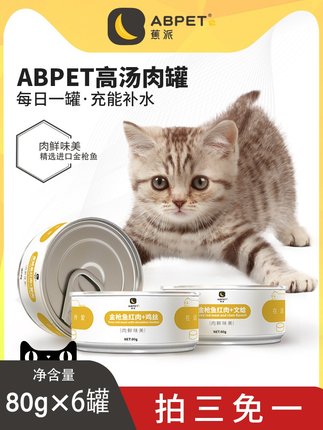 【Abpet 金枪鱼红肉高汤猫罐头 80g*6罐 14.9元包邮(需用券)】