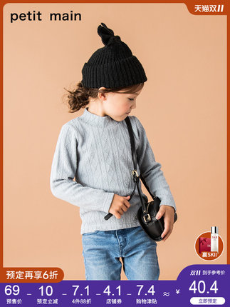 petitmain 女童 素色小高领毛衣,弹力好,舒适柔软,提花花纹面料,突显秀气美,小高领设计,呵护颈部肌肤!petitmain童装旗舰店预售价69元,支付10元定金立减10元,再领取10元券,实付49元包邮。