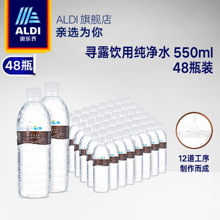 ALDI奥乐齐 寻露 饮用纯净水 550ml*48瓶,优质水源,先进的设备,十二道工序加工~天猫有商家预售价77元,支付10元定金立减15元,再领取15元券,实付47元包邮。