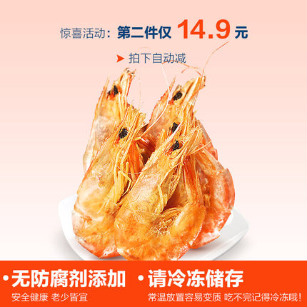即食虾干海鲜干货,非油炸,饱满鲜嫩的肉质,更紧实有嚼劲,拿来煲汤,清蒸等都好吃。目前天猫商城翰婧食品专营店售价¥26.9,叠加¥15优惠券,券后实付¥11.9包邮到手,降5元新低价,新鲜海捕,烘干锁鲜。