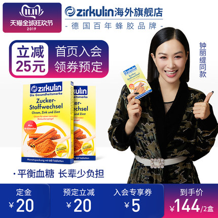 德国进口 zirkulin 天然降糖肉桂片 60片*2盒 平衡血糖 129元双11预售到手价 定金20元