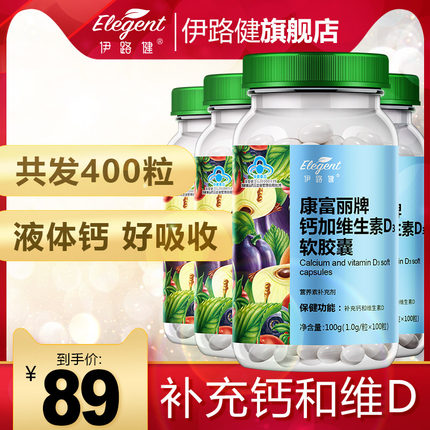 伊路健钙加维生素D3软胶囊液,体钙补钙成人钙片,中老年碳酸钙老人,液体钙,好吸收