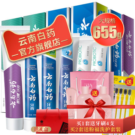 【云南白药 鸿运新全家福牙膏套装 6支共655g 送牙刷2支79元包邮】