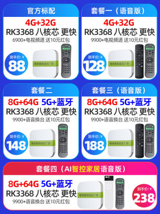 夏新 H6 家用电视机顶盒,智能AI语音盒子,华为海思8核芯片电视机顶盒,4G加32G内存,语音遥控,智能搜索,无线投屏,4K高清输出,联网即用,内置优酷,爱奇艺VIP,腾讯视频等超级会员。商家领券拍下68元包邮