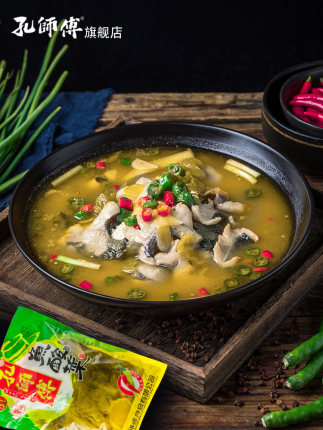 正宗四川老坛酸菜鱼的酸菜。孔师傅 正宗四川老坛酸菜 400g*5袋,天猫商城 孔师傅旗舰店售价¥19.5,叠加¥10优惠券,券后实付¥9.5包邮到手