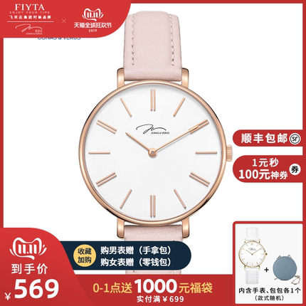 天猫JONAS&VERUS唯路时旗舰店719元,下单立减20元,可领300元优惠券,实付399元到手,平常719元,双11冲量特价。唯路时是中国著名手表飞亚达的副线,虽然是年轻的品牌,但设计团队均出自iF奖、红点大奖获得者,实力不俗,古力娜扎、杨洋、李沁、张韶涵街拍中出镜率极高。从款式设计上来说,已经在时尚圈获得了肯定。此款女士腕表,款式上和小清新手表的鼻祖DW相似,6mm轻薄的表身、干净的表盘,意大利真牛皮表带,营造了百搭的书卷味的气质,斯堪的纳维亚极简风格,除了传统显示时间外,整个表面并无多余修饰,但从指针到表冠都经得起推敲,通勤、约会、休闲场合都能hold住,适配率高不易出错。