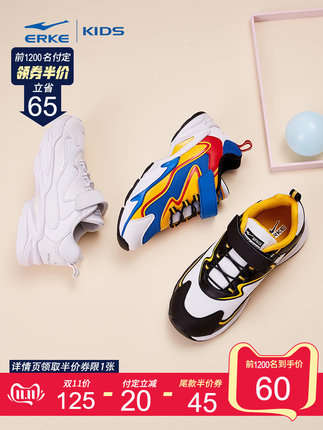 鸿星尔克童装旗舰店,¥125元 双11预售价,-20元 付定金立减,-45元优惠券,=60元 到手价(定金20+尾款40),鸿星尔克今年先款的儿童老爹鞋,京剧脸谱为灵感的鞋面,多层网布搭配皮革材质,潮范十足,大块厚底,非常有设计感,厚底还有增高的效果,大底分区的天然橡胶材质,防滑减震,运动无忧。