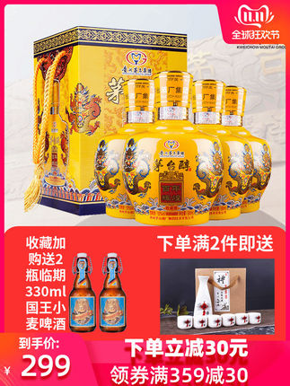 天猫酒富盛酩酒类专营店369元,可领70元优惠券,实付299元到手,规格是:52度 柔雅浓香型 500ml*4礼盒装。非常适合送礼或亲朋好友聚会饮用。还送国王小麦啤330*2瓶。这款茅台醇百年辉煌,是贵州茅台集团出品,和最著名的飞天茅台一样,都是属于茅台集团的。采用高粱、小麦、水,酿造而成,是一款柔雅浓香型白酒,口感醇正,更绵甜、易入口,浓浓的茅台风,定制烫金祥龙纹瓶装,高端大气上档次,多项防伪标志,可扫二维码查询,自用送礼佳选。