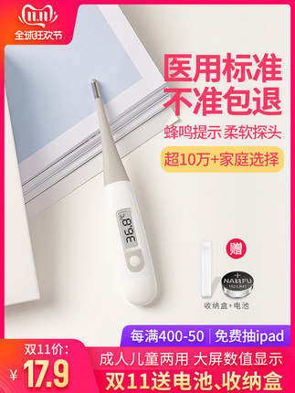 天猫九安医疗器械旗舰店19.9元,可领2元优惠券,实付17.9元到手,送收纳盒。九安是国产电子血压计领域的领头羊,和欧姆龙之类的比,性价比很高;而且很多医院使用的仪器都是他家出产的,同时也是iHealth的制造商,品质方面有保证。这款九安电子体温计,是医用级别标准,采用高灵敏热敏电阻测温技术,测量精度±0.1℃。不含水银,有效避免玻璃破碎活水银泄露的危险,口腔、腋下都能用。可弯曲软头,紧密贴合测量部位,测量结束后,屏幕显示℃的符号停止闪烁,自动发出蜂鸣提示,避免遗忘查看测量结果。LED大屏数值显示,读数清晰。有前次记忆功能,可前后对比测量数据,这个设计很贴心。