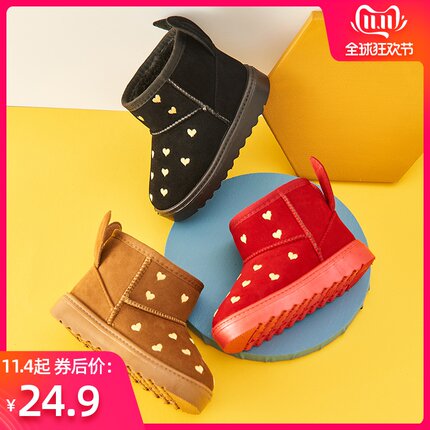 小熊社 儿童 加厚雪地靴,合理剪裁,穿着更舒适,加厚绒毛,保证温暖,鞋面爱心图案和兔耳朵的设计,尽显宝宝的活泼俏皮,又不乏潮流,时尚和舒适兼备~商家领券拍下19.9元包邮