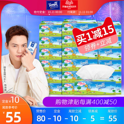【Tempo得宝纸巾4层100抽*16包 双11预售# 到手价64.9元包邮 (定金10元立减5元,叠加5元券)】