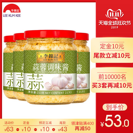 李锦记 蒜蓉酱 213gx4瓶,蒜香浓郁,佐餐或者作为调料都很好用,增香增味,0添加,吃起来安全放心。