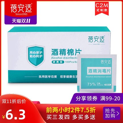 蓓安适 消毒片/酒精片 100片,医护级消毒片,无纺布材质,铝箔纸包装,75%酒精度,保持持久,多种用途,携带方便,户外好帮手!商家领券拍下7.5元包邮