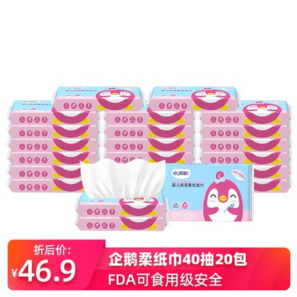 小润家乳霜保湿巾,婴儿抽纸专用纸巾40抽20包,乳霜保湿柔纸巾,富含保湿因子,柔软,3层不掉屑,零刺激,可食用级别,丝柔润滑巾,宝宝用的安心。