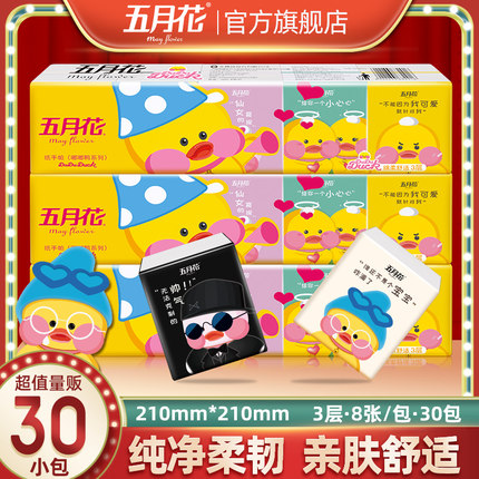 【五月花嘟嘟鸭手帕纸30小包随身装便携式餐巾纸面巾纸可爱卫生纸 9.9元包邮】